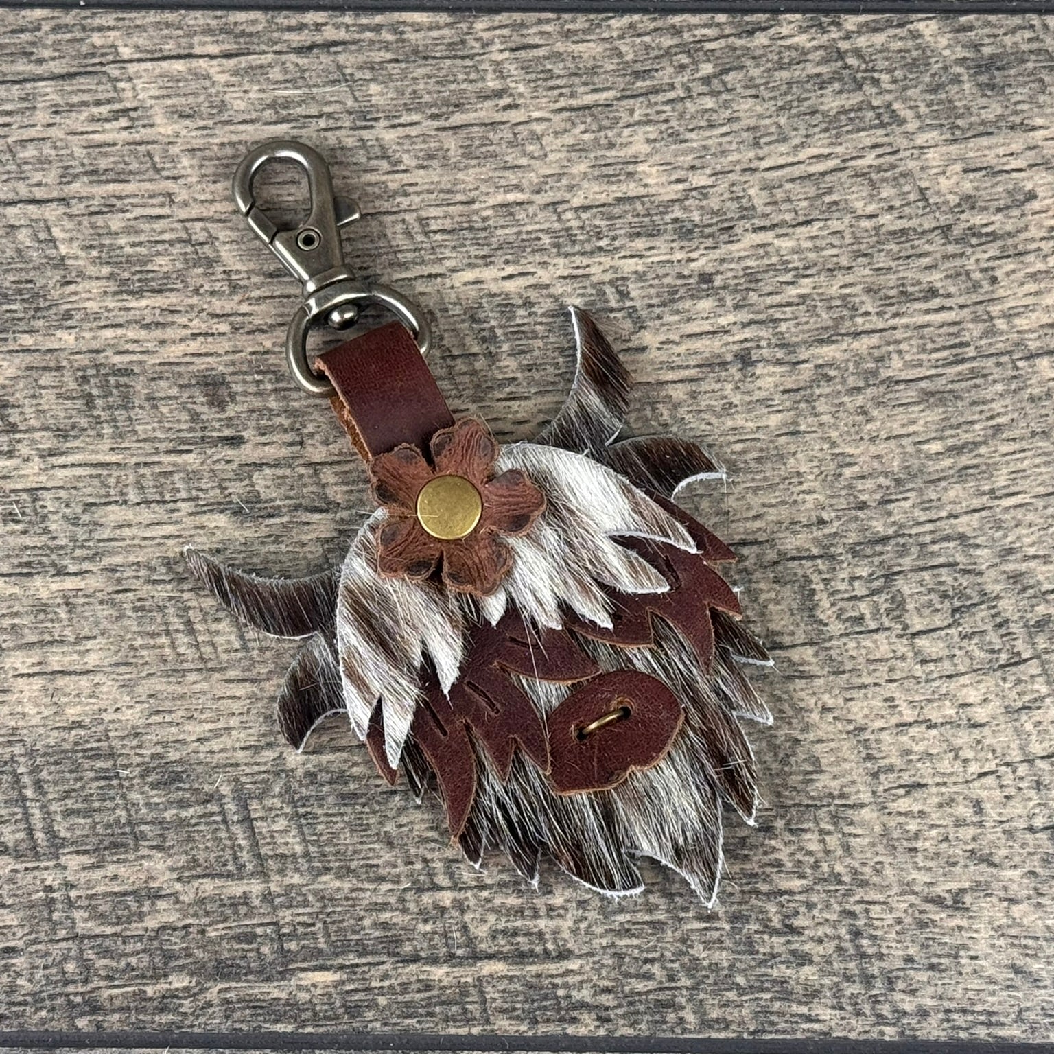 Highland Cow Purse Charm 014 - Brown & White w/Flower
